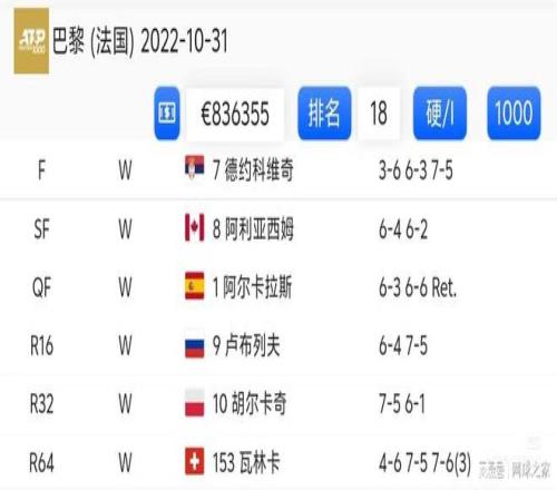 當(dāng)然,奪冠過程中戰(zhàn)勝德約拿到含金量十足的大師賽還不止這些,你還能想到哪些呢?(來源:網(wǎng)球之家 作者:羅城七爺)